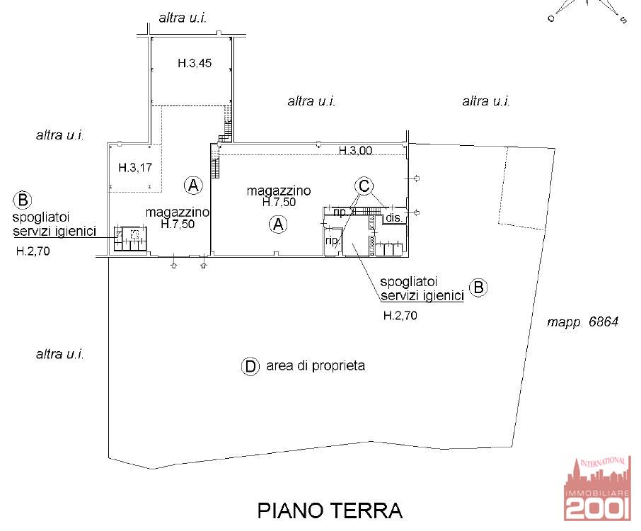 La superficie complessiva interna è di circa 840 mq totali (capannone + spogliatoio + ripostiglio) oltre a 67 mq di uffici.