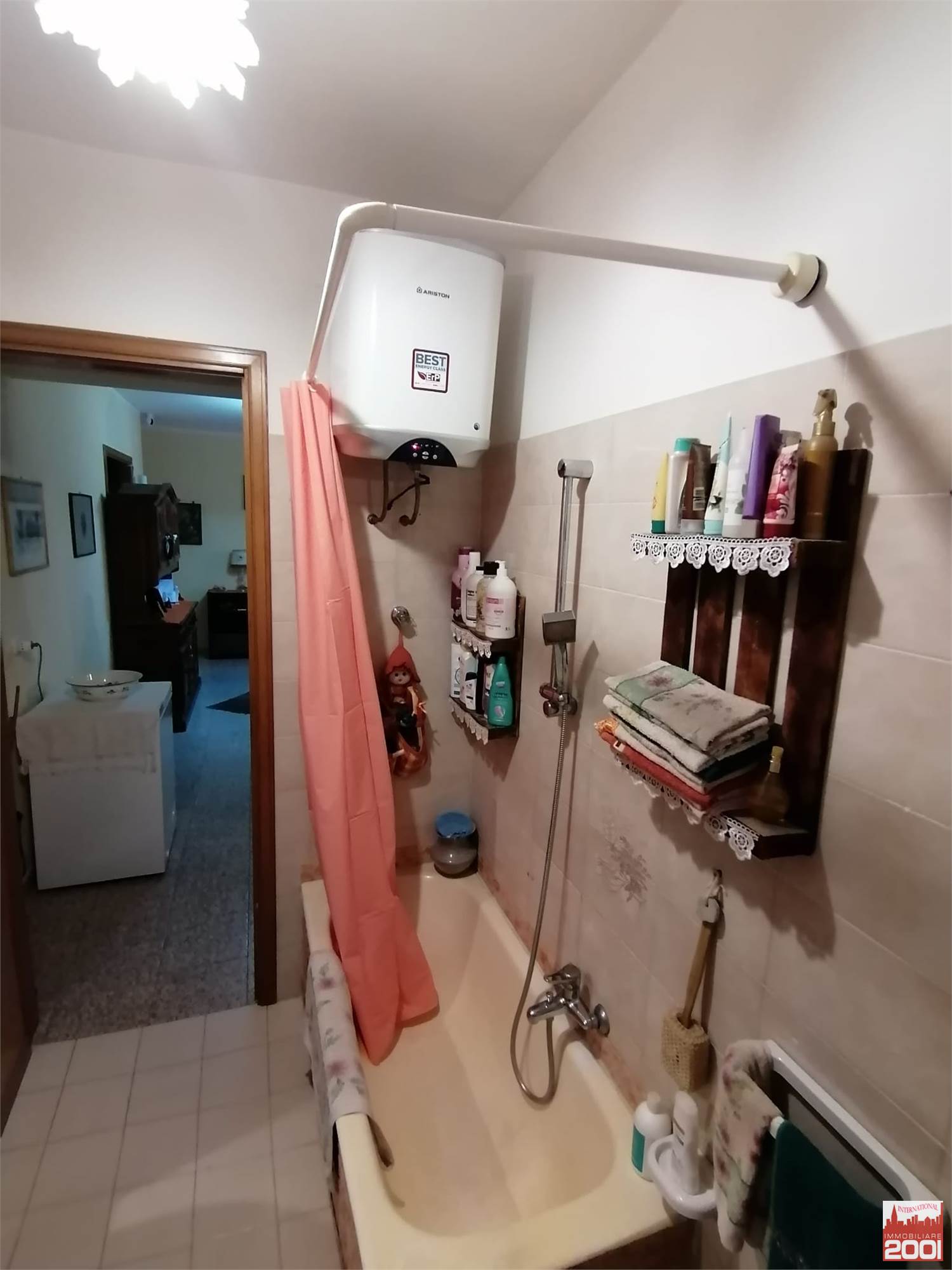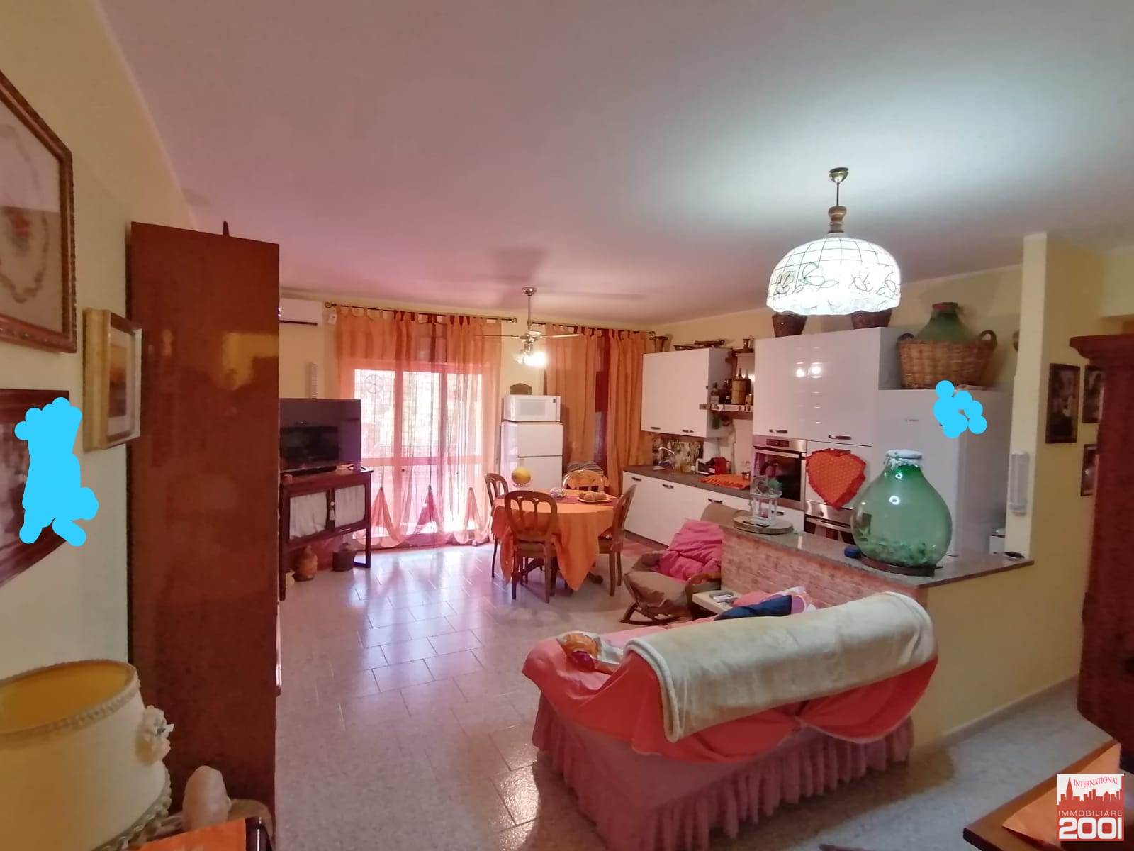 Ingresso con portoncino blindato, zona giorno con cucina a vista, balcone privato coperto, camera matrimoniale molto spaziosa con balcone, cameretta, bagno con vasca