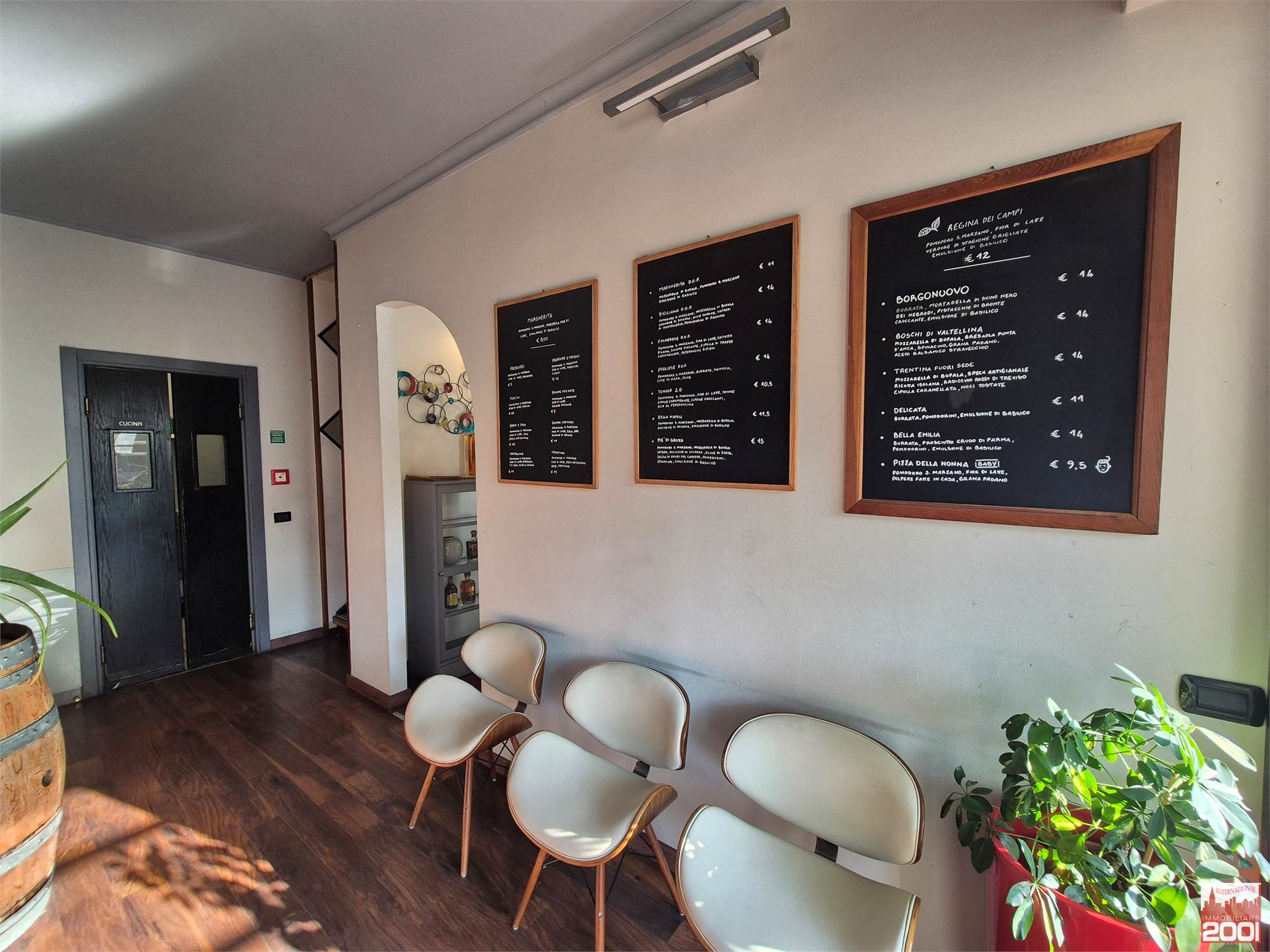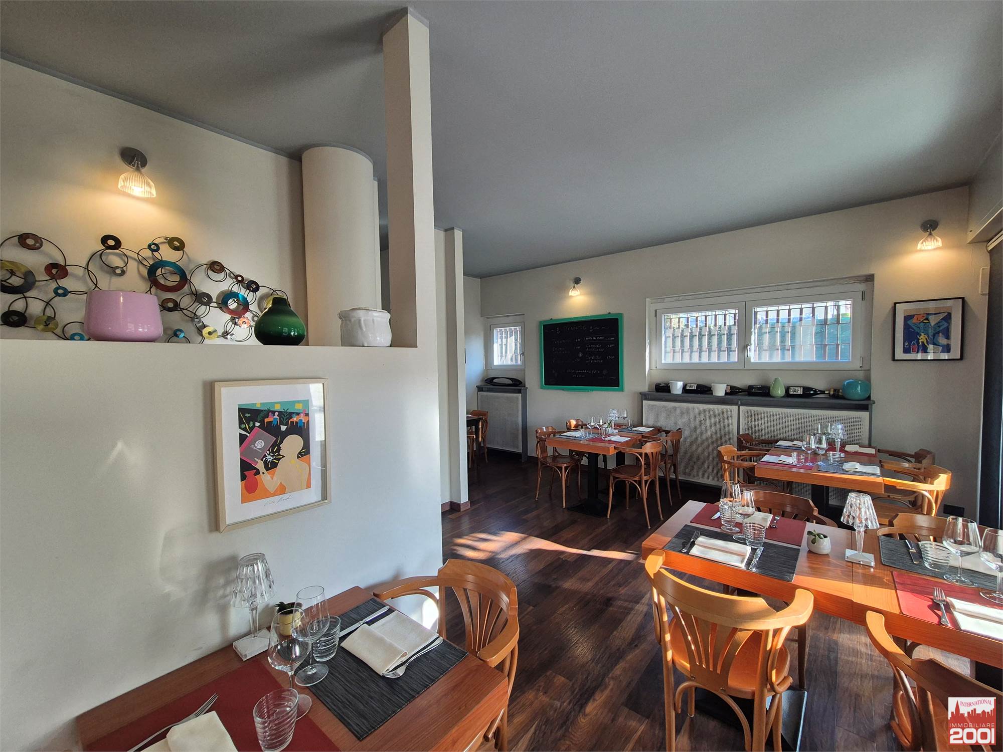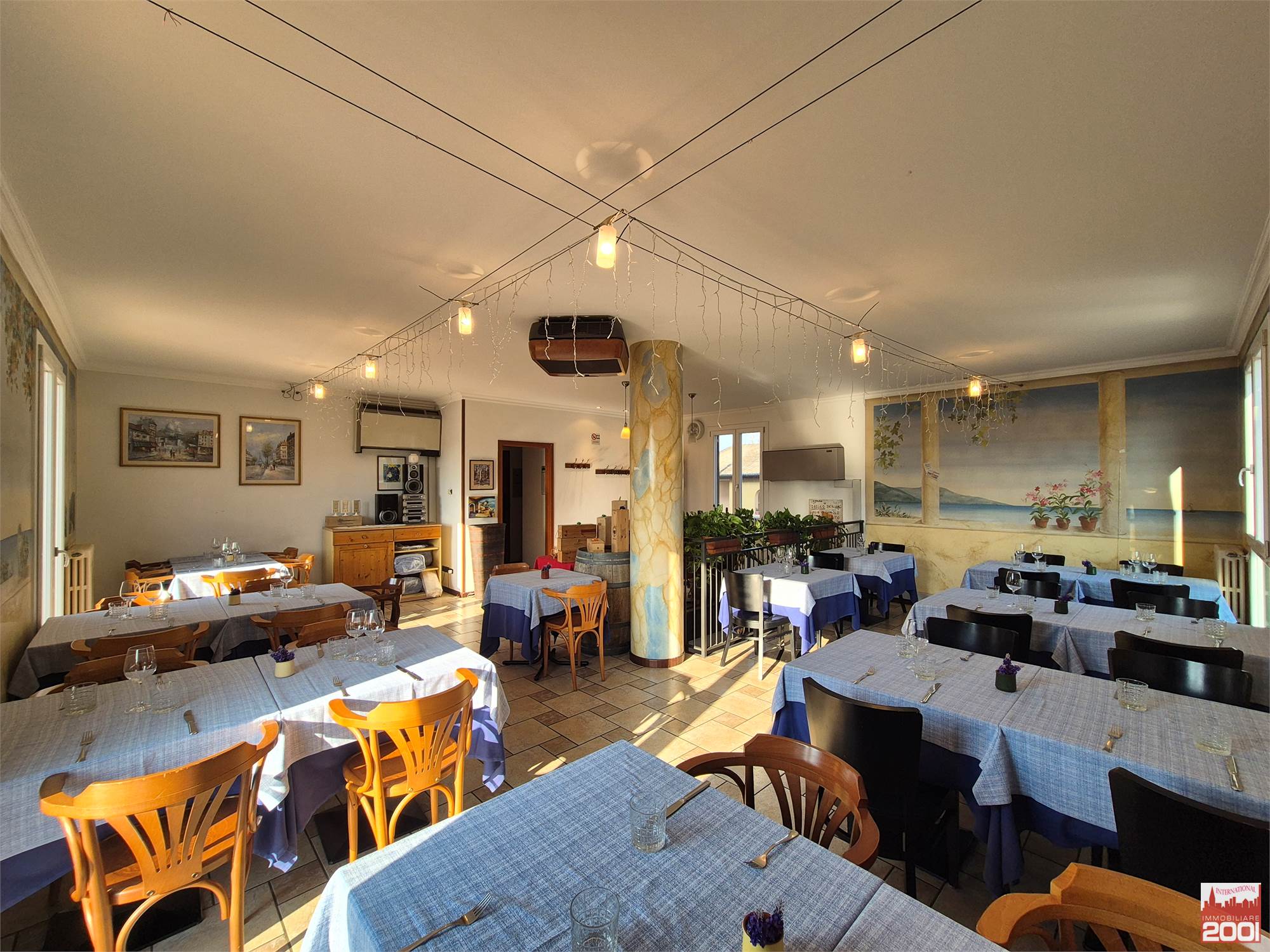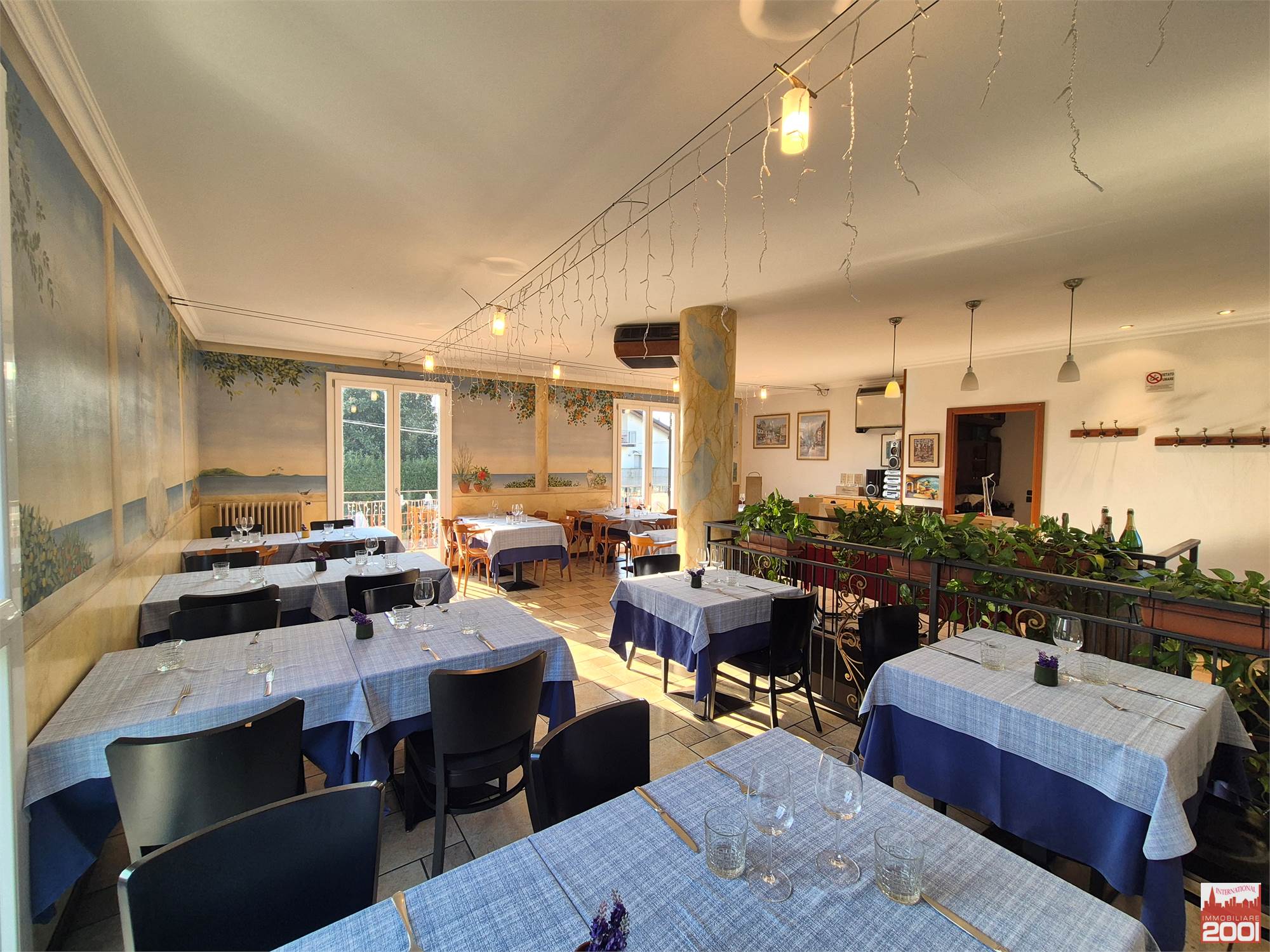 Il ristorante dispone di circa 70 posti a sedere interni, distribuiti su due livelli, per una superficie complessiva di circa 190 mq. La struttura è composta da una cucina completamente attrezzata con pass per il servizio al piano superiore, office, zona pizzeria e servizi igienici su entrambi i piani.