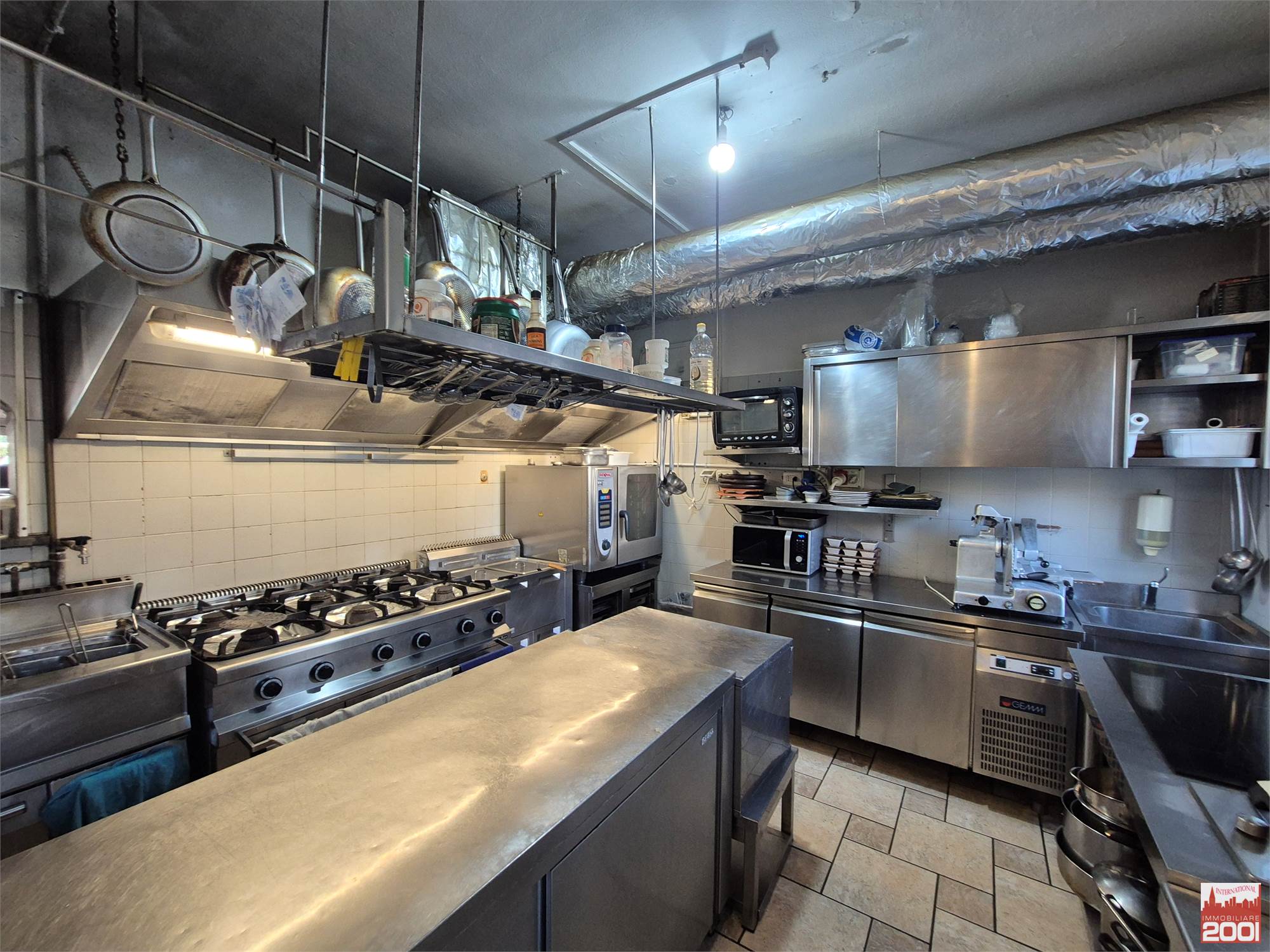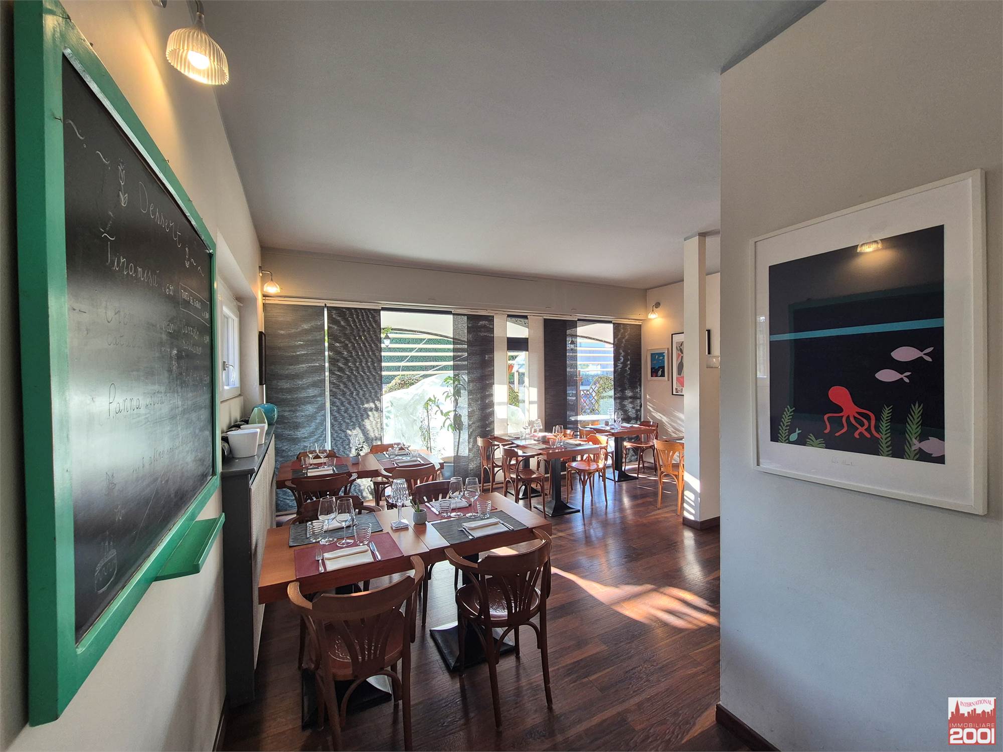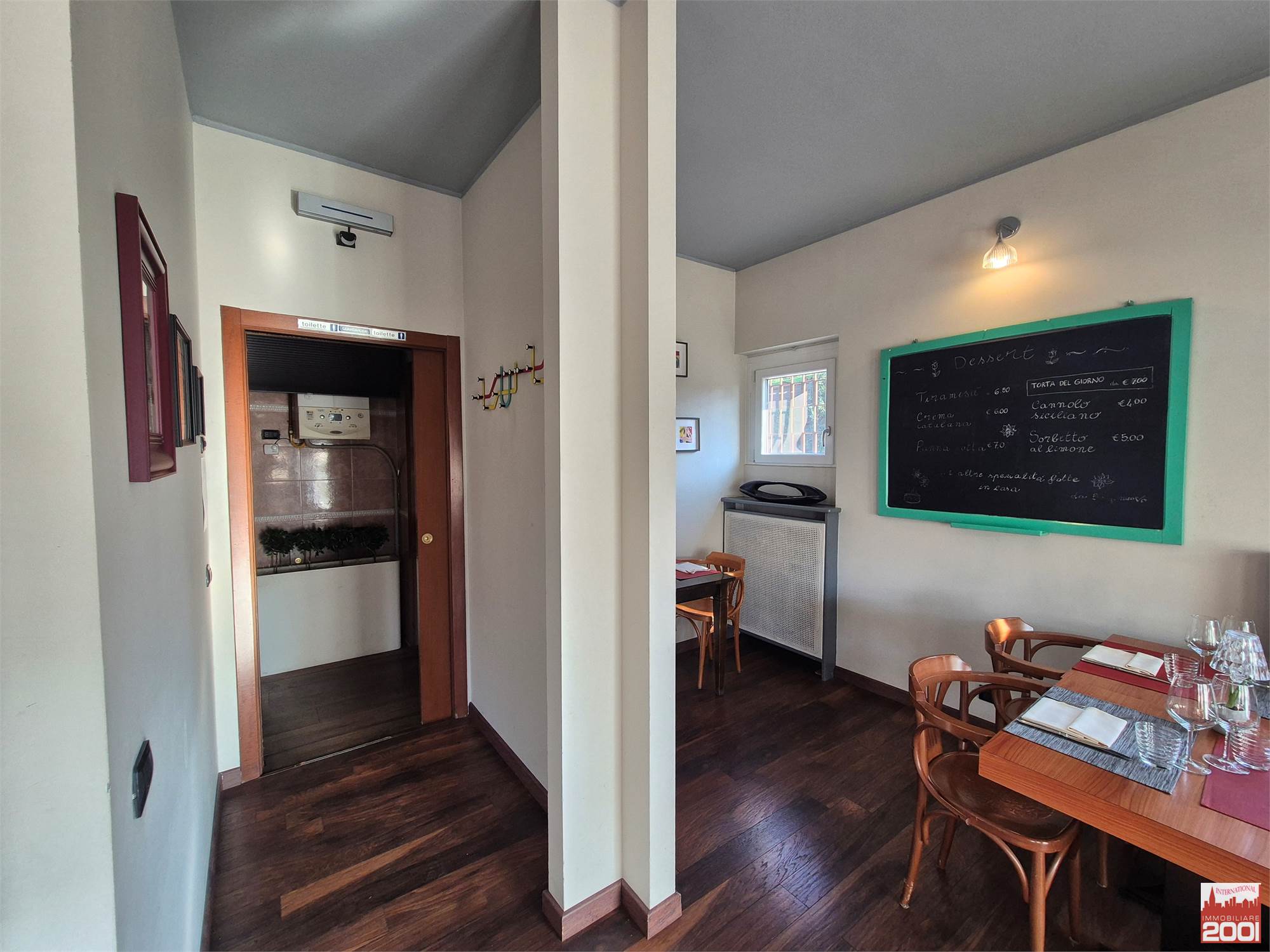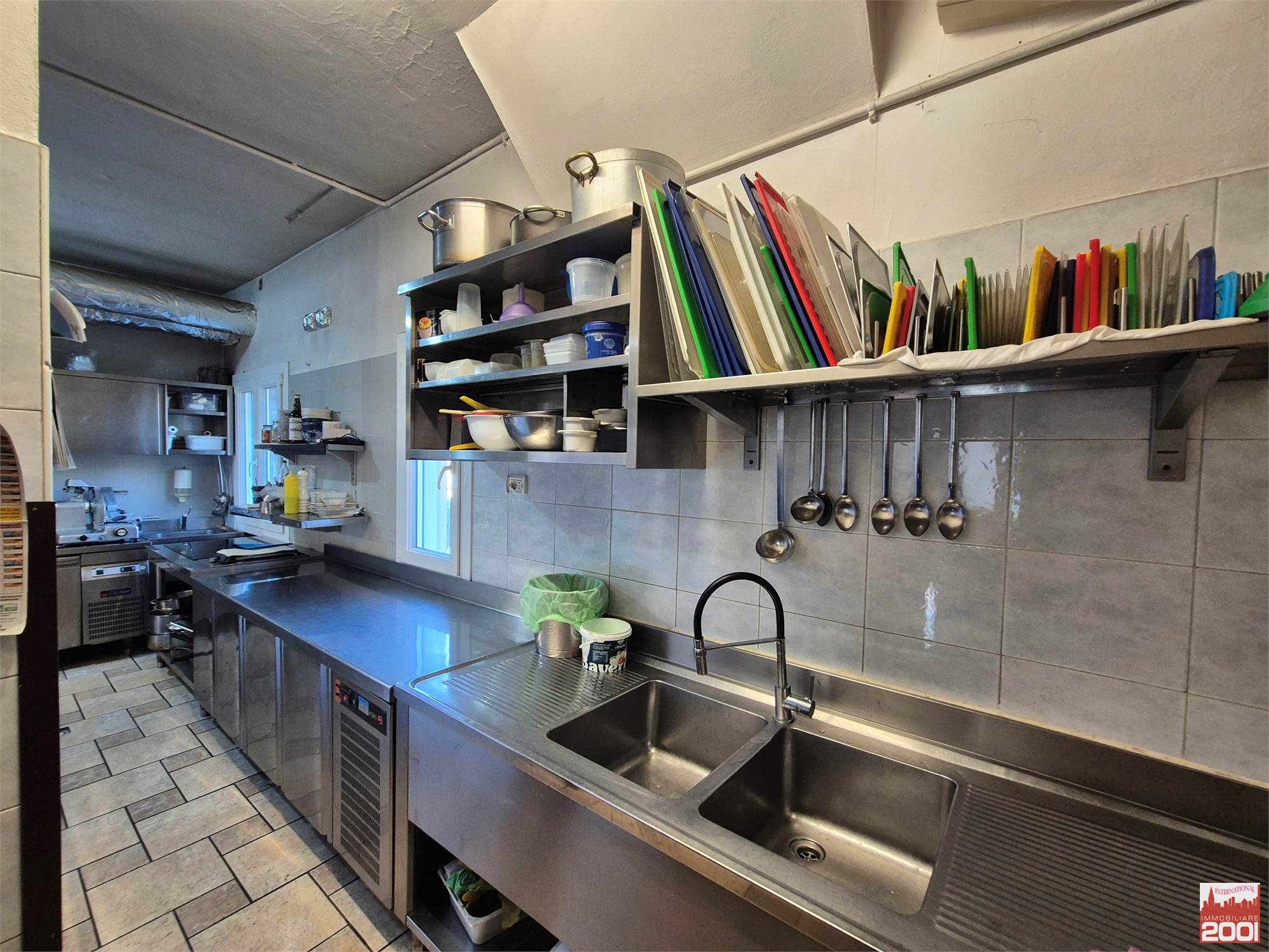 Il ristorante dispone di circa 70 posti a sedere interni, distribuiti su due livelli, per una superficie complessiva di circa 190 mq. La struttura è composta da una cucina completamente attrezzata con pass per il servizio al piano superiore, office, zona pizzeria e servizi igienici su entrambi i piani.