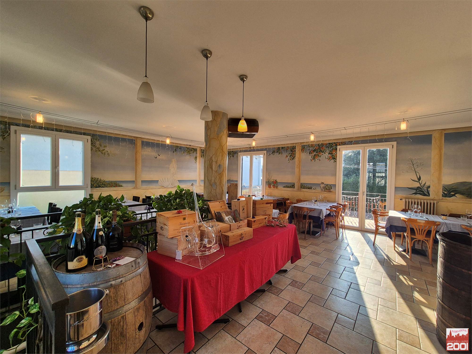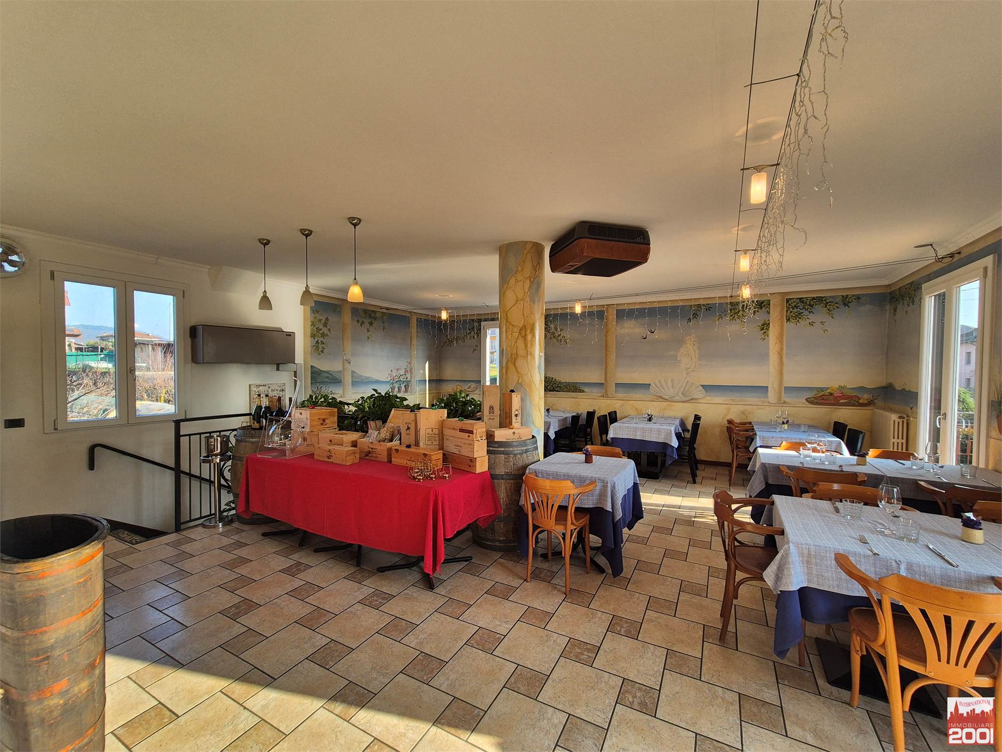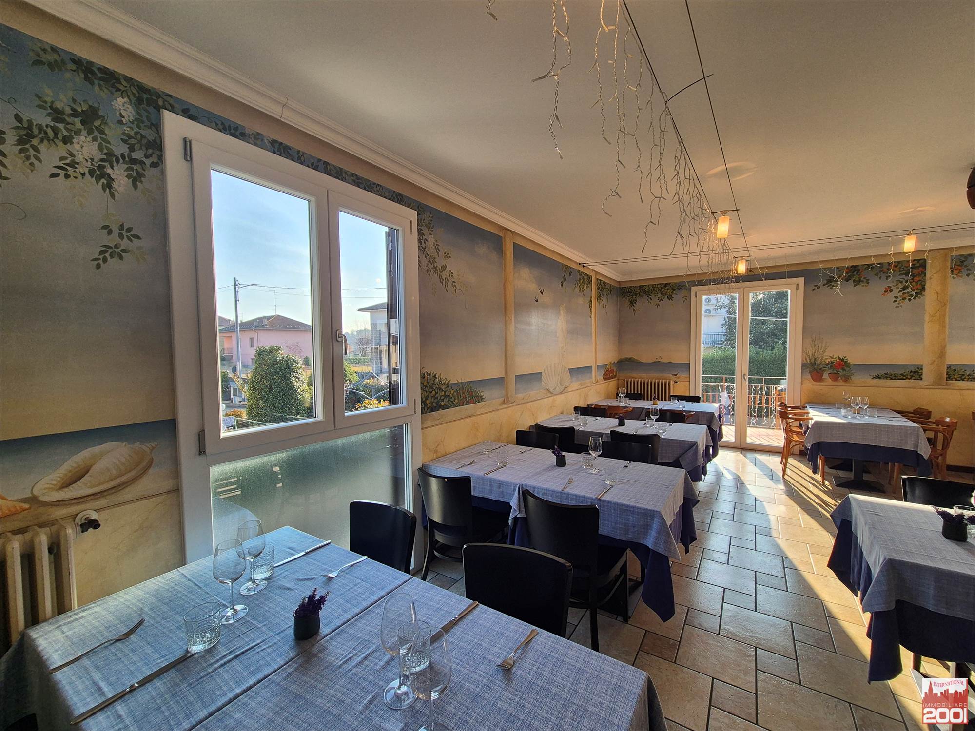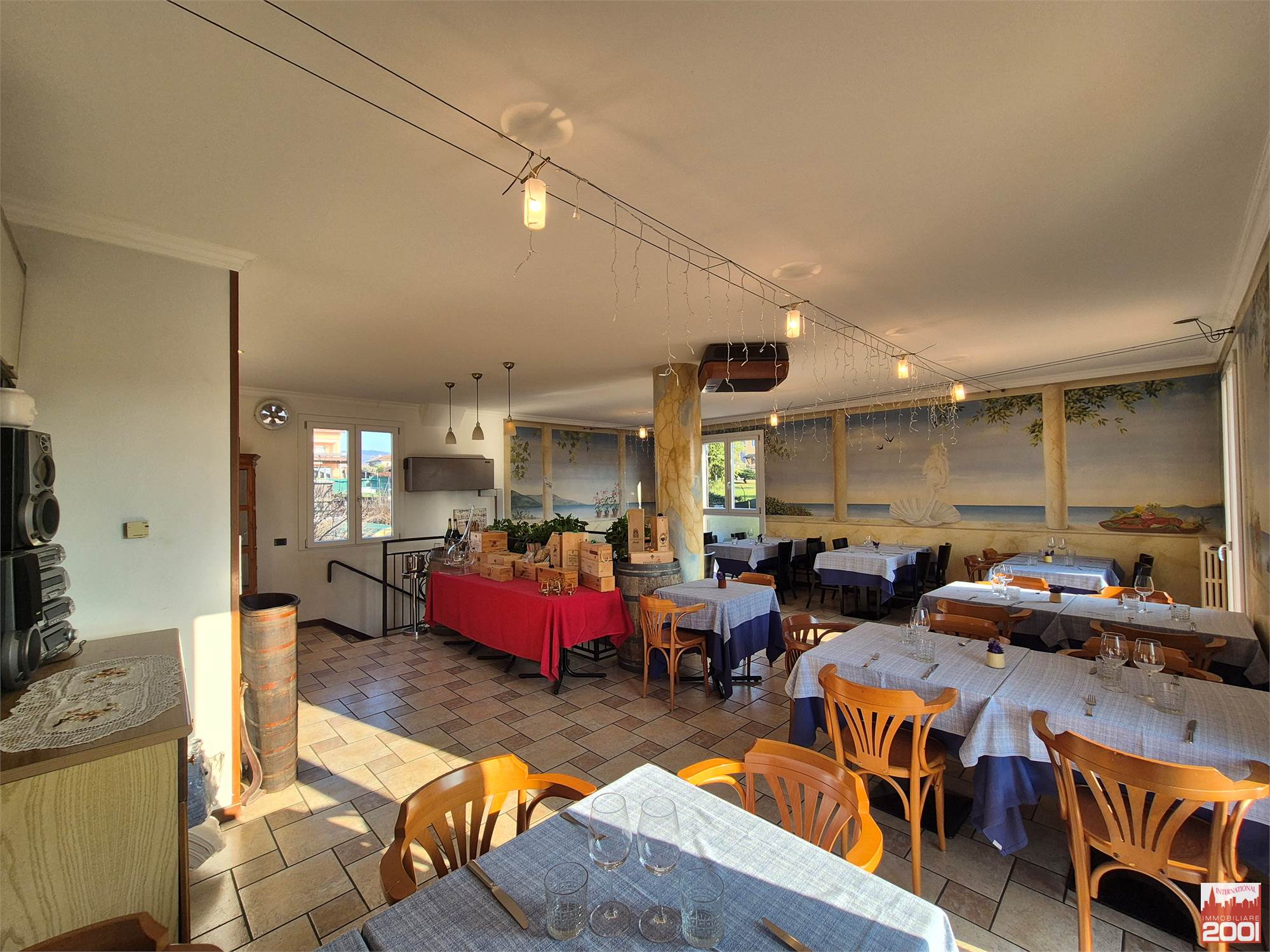 Il ristorante dispone di circa 70 posti a sedere interni, distribuiti su due livelli, per una superficie complessiva di circa 190 mq. La struttura è composta da una cucina completamente attrezzata con pass per il servizio al piano superiore, office, zona pizzeria e servizi igienici su entrambi i piani.