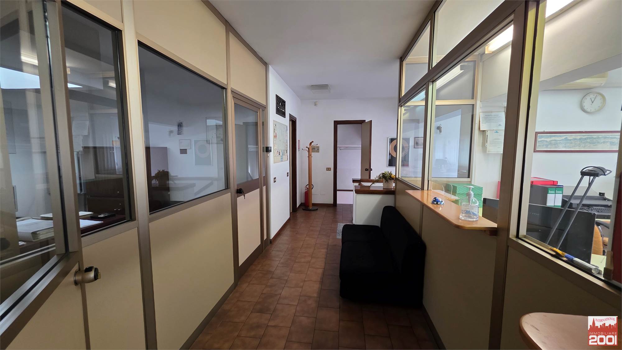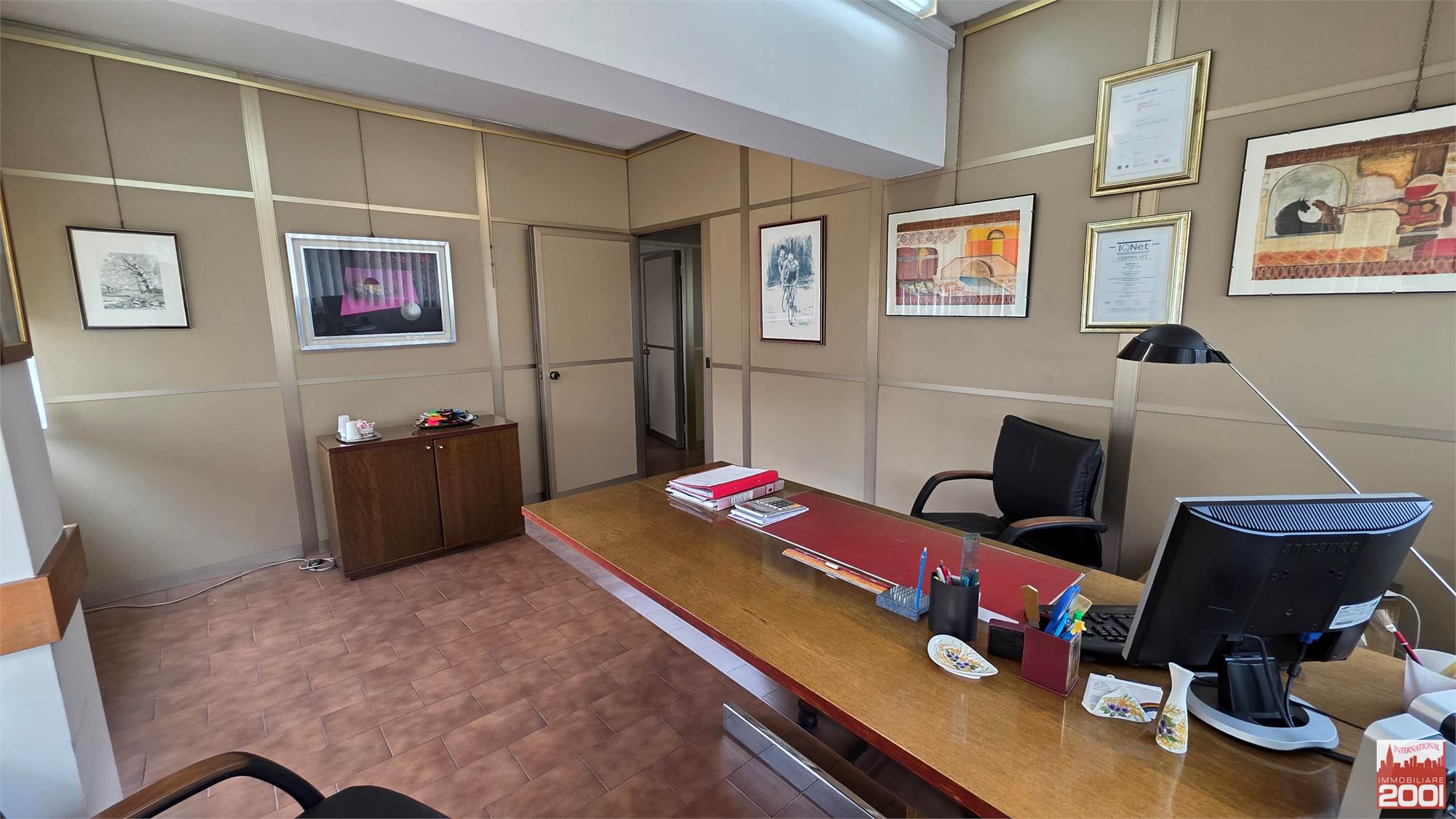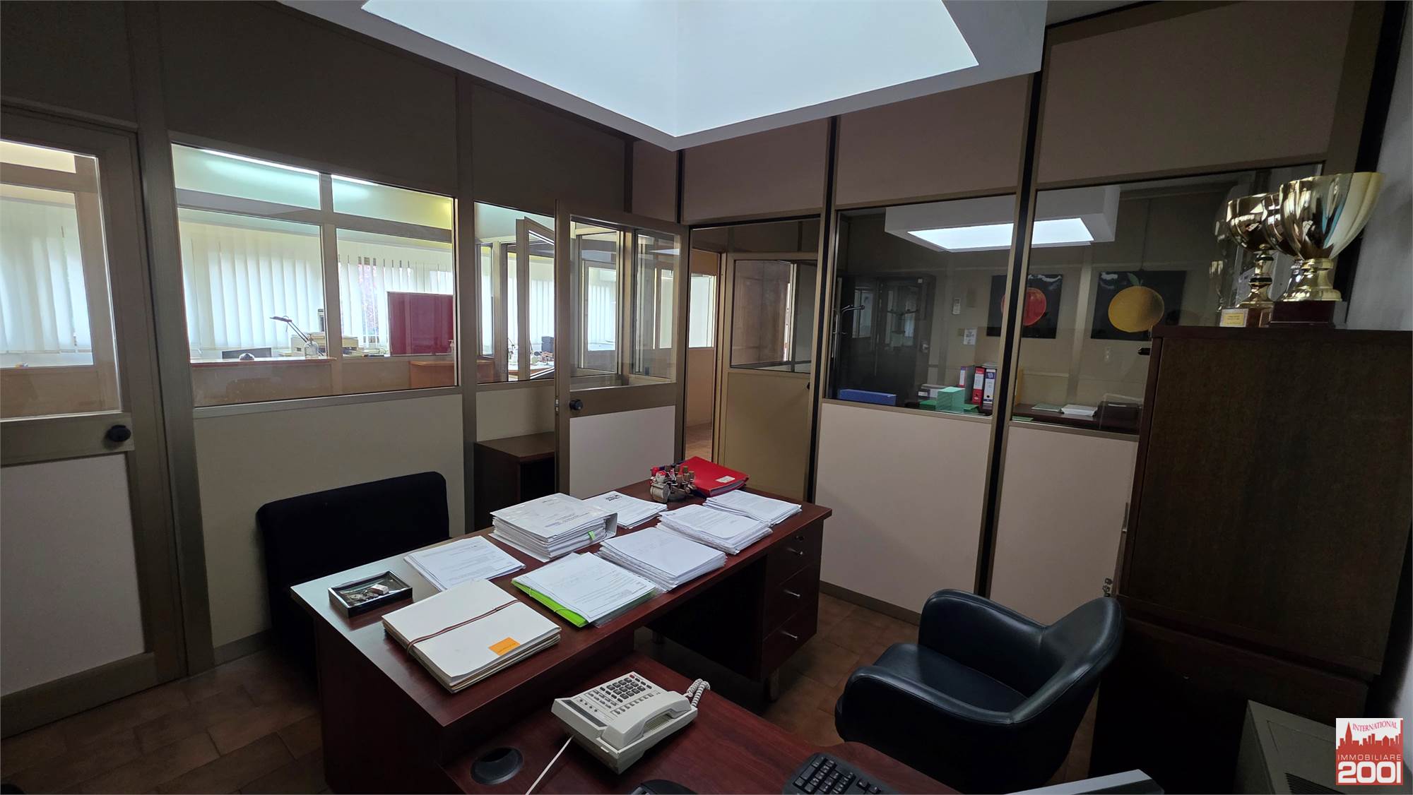 Al primo piano, gli uffici di 142 metri quadrati e la casa trilocale di 120 metri quadrati con riscaldamento autonomo offrono un confortevole spazio di lavoro e di vita. La proprietà dispone inoltre di un impianto di pannelli fotovoltaici da 100 kWh, che garantisce un notevole risparmio energetico.