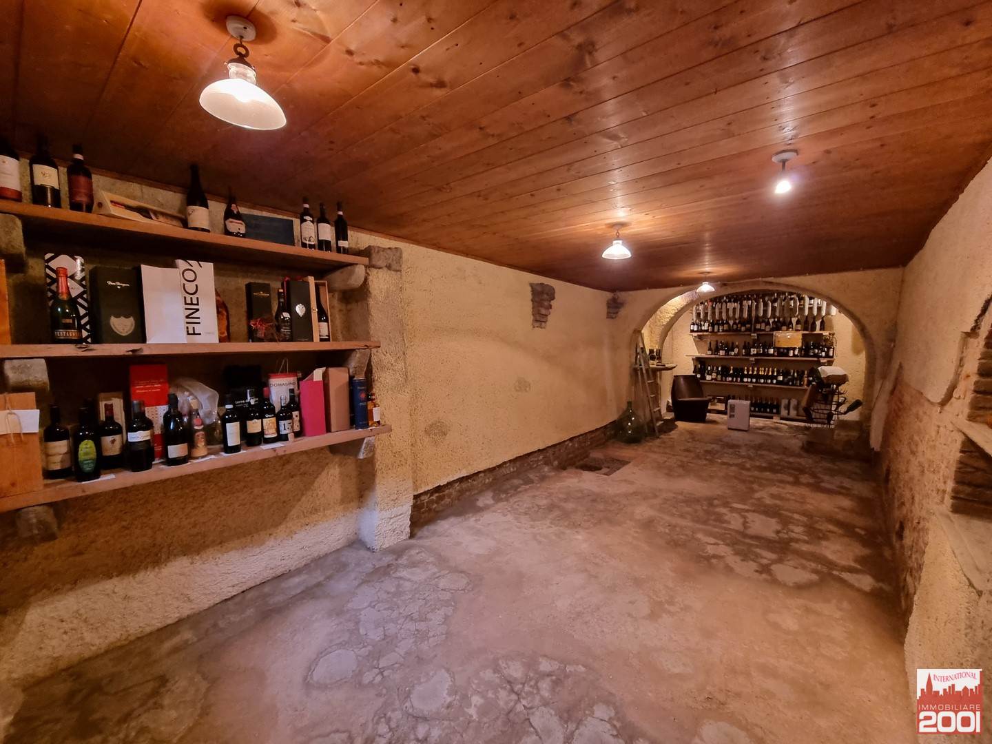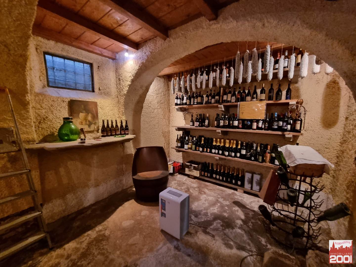 Piano interrato: Antica cantina con mattoni a vista e raccolta di vini