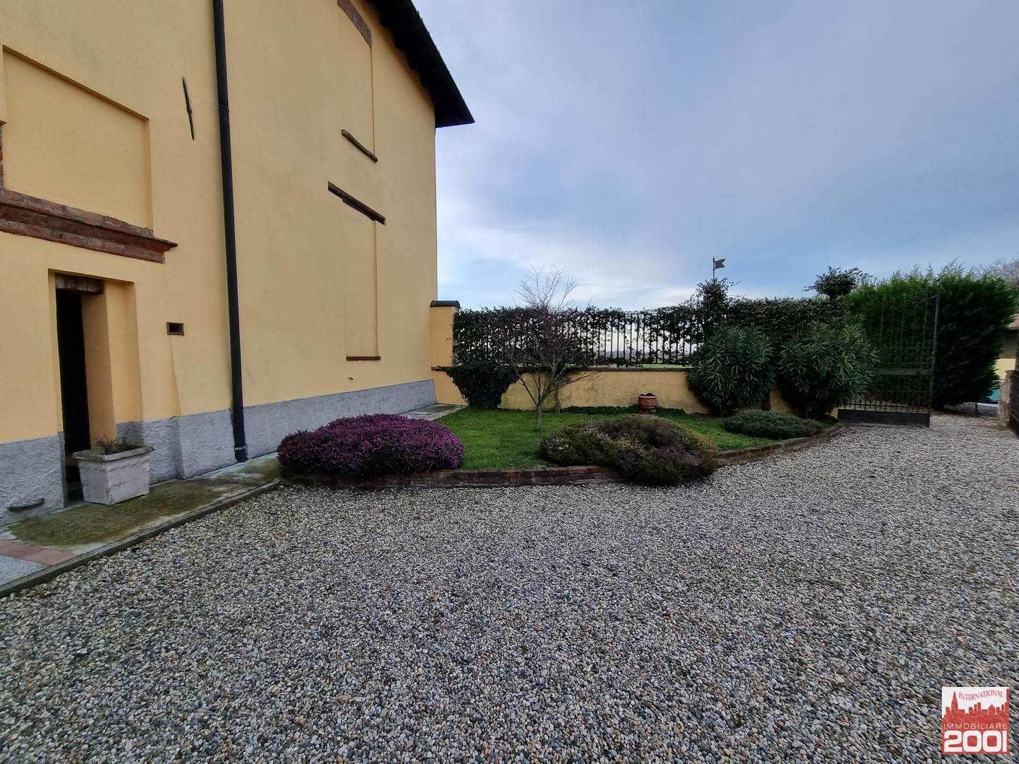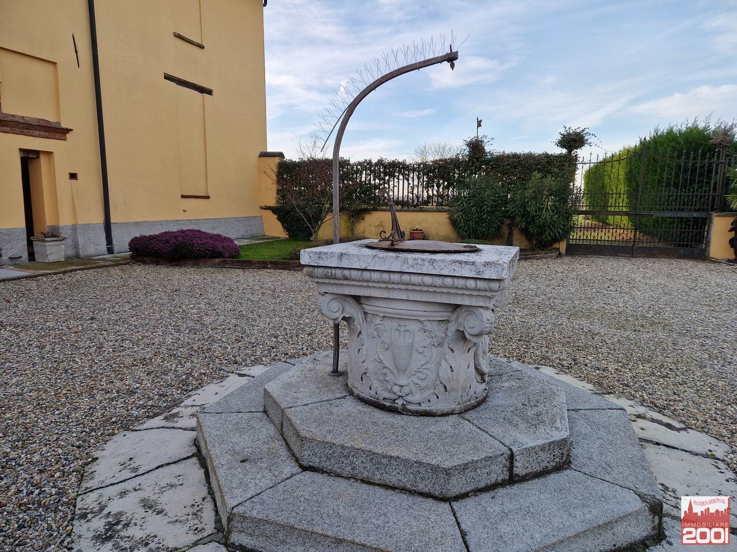 Cortile privato con aiuole fiorite e piante di medio taglio caratterizzato anche dalla presenza di un pozzo funzionante alto 4 metri in cemento forgiato bianco del 700 al centro del cortile ed un altro adeso alla finestra della cucina.