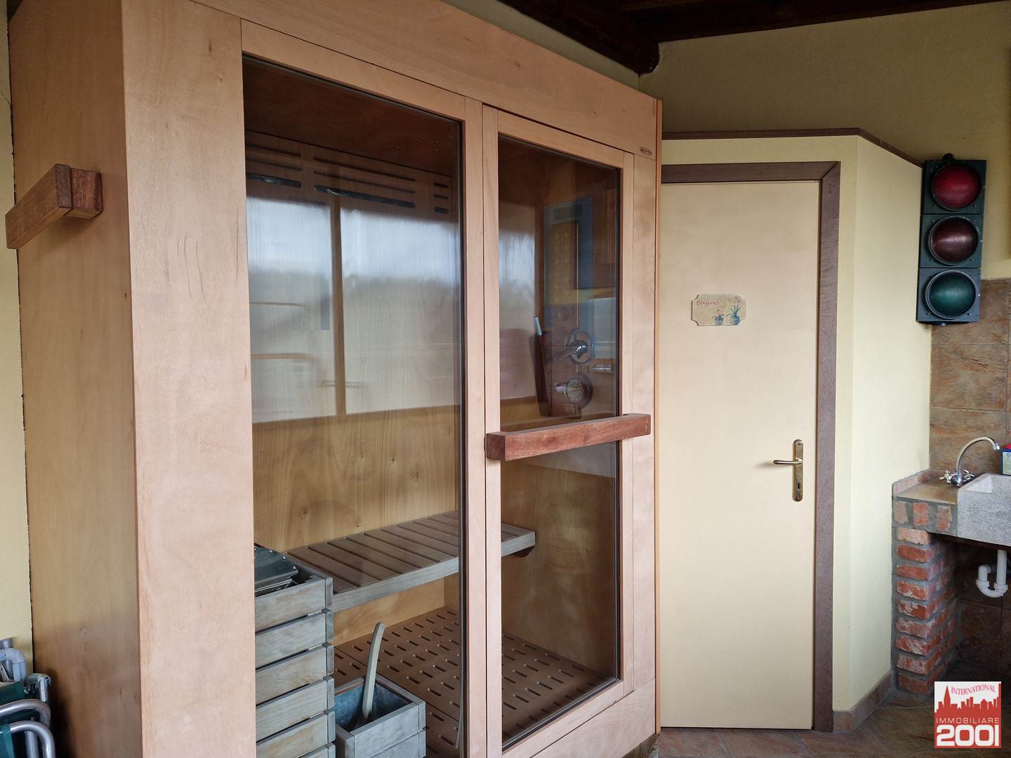 Area relax con piacevole piscina interrata Bruxelles (10 mt di lunghezza X 4 mt di larghezza) e locali dedicati con giochi vari quali ping pong-calcetto-sacco-saltasalta-scacchi, con servizi igienici, sauna e bagno turco oltre ad oggetti anni 70 quali ad es un originale frigorifero della coca cola.