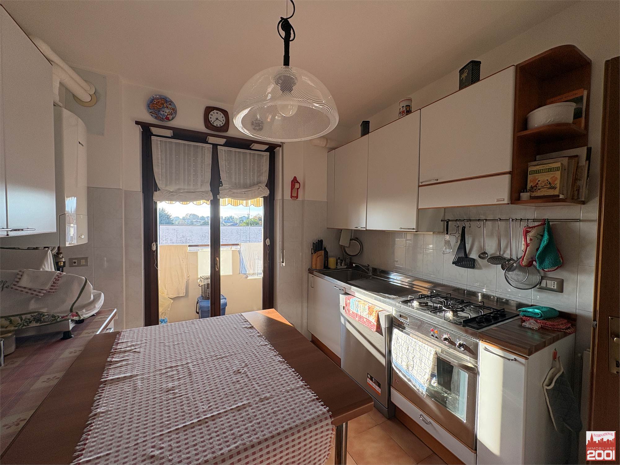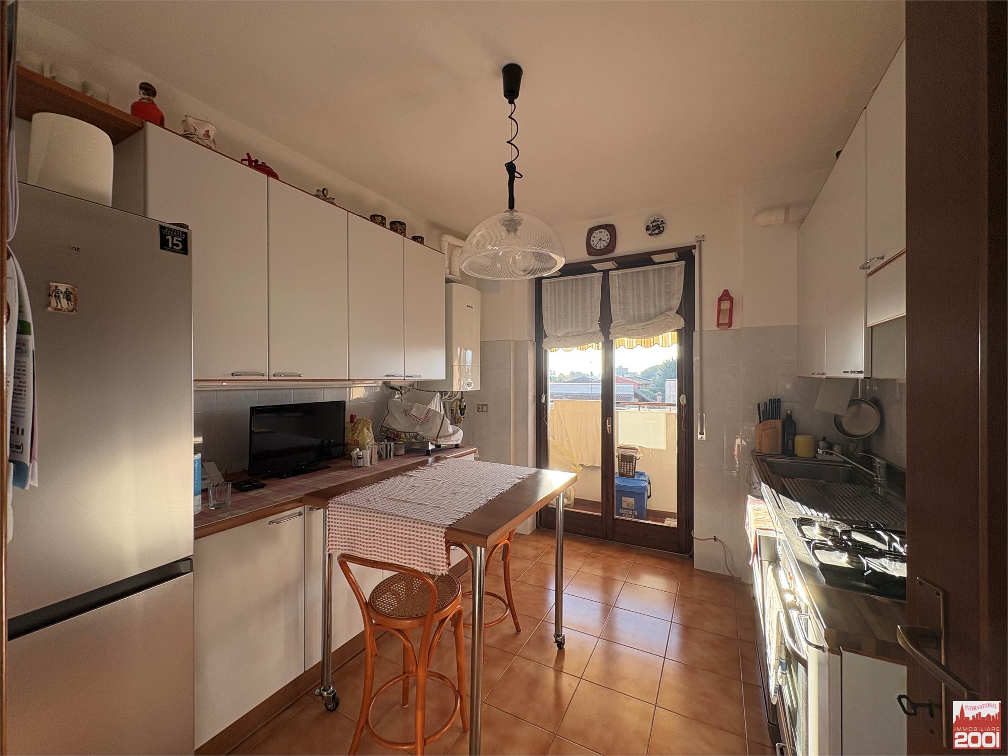 Accedendo all’appartamento ci accoglie una luminosissima zona giorno con accesso al balcone, ideale per momenti di relax o pranzi in compagnia. A seguire troviamo una cucina abitabile anch’essa servita da balcone.