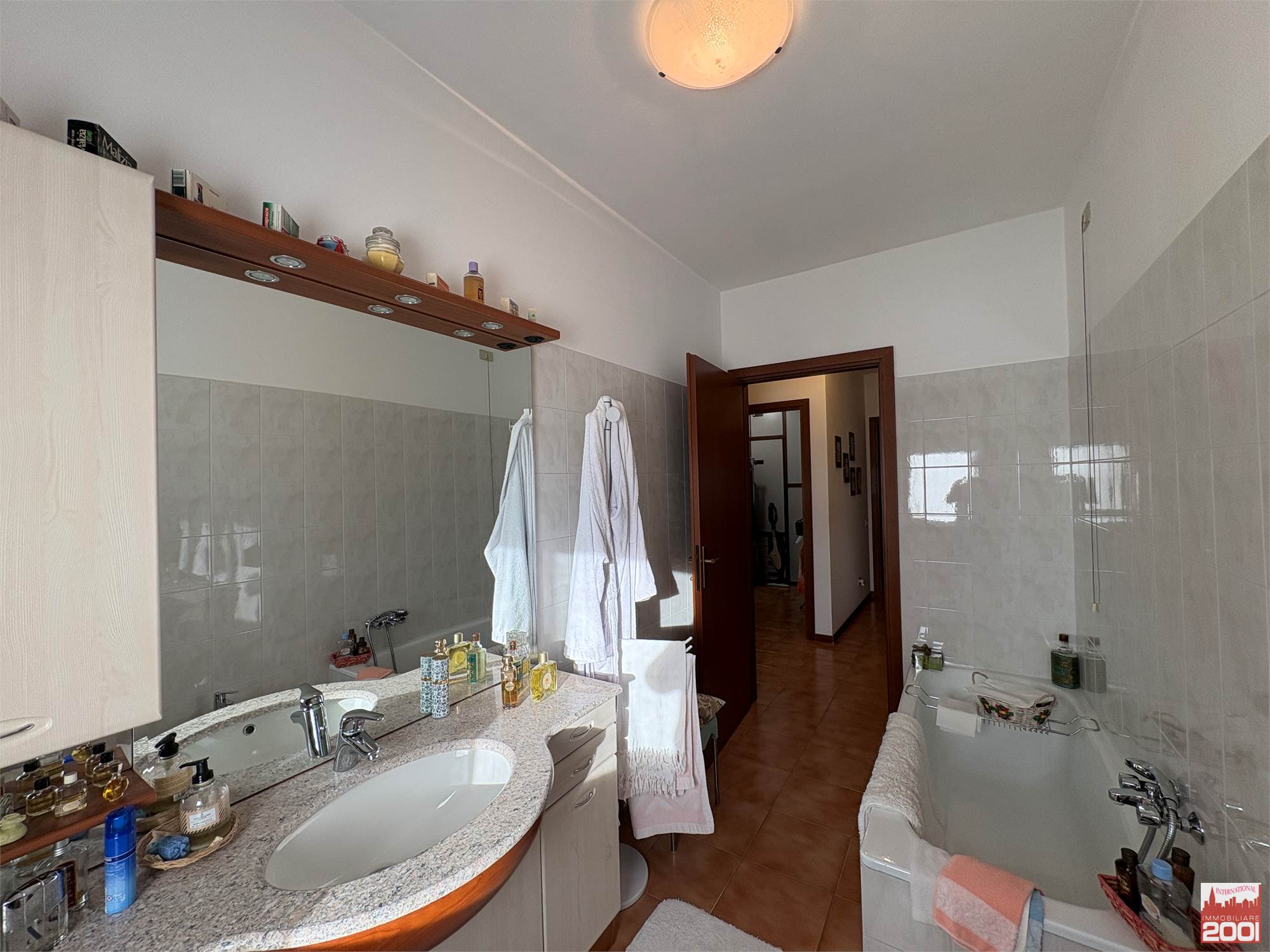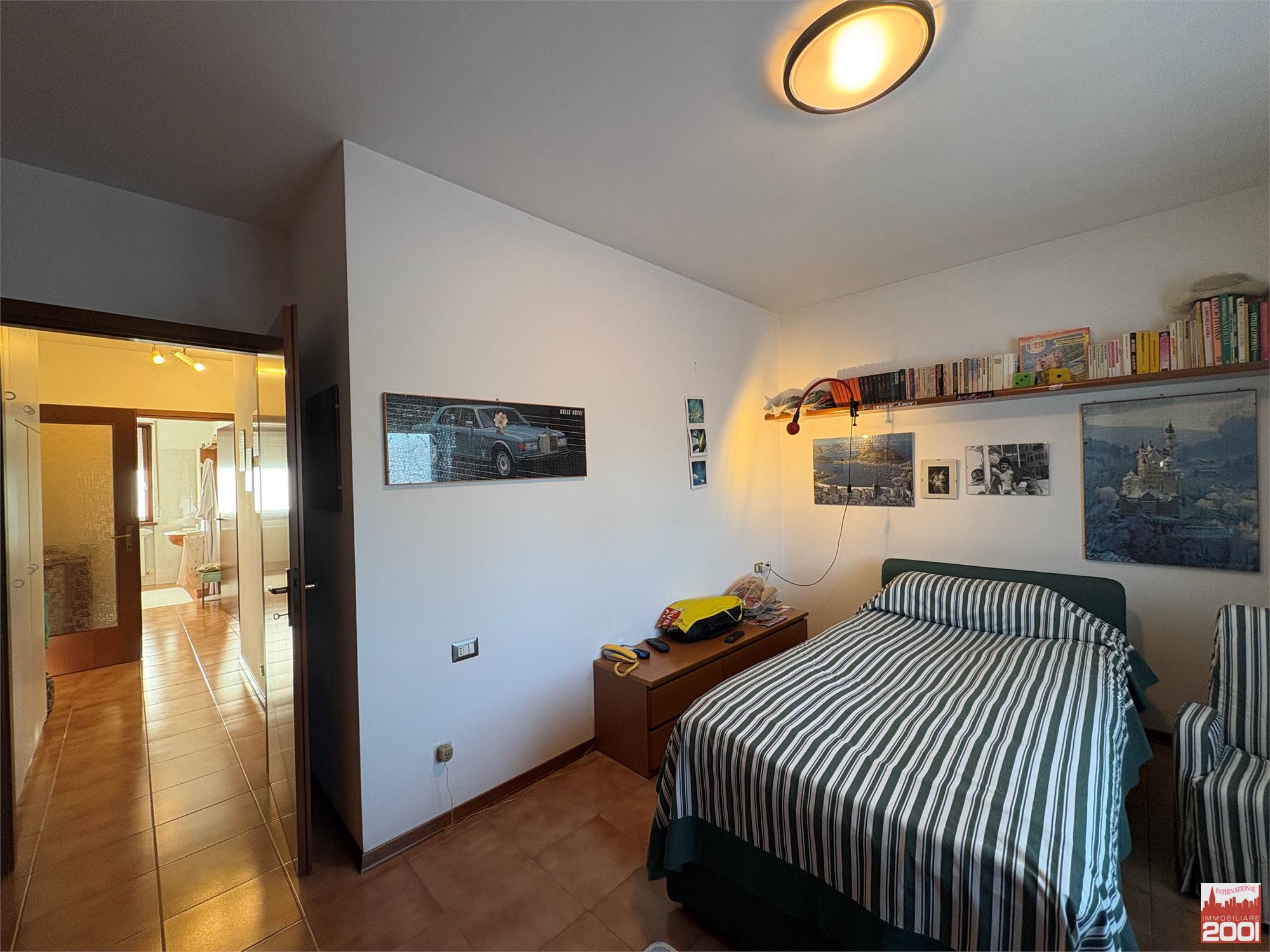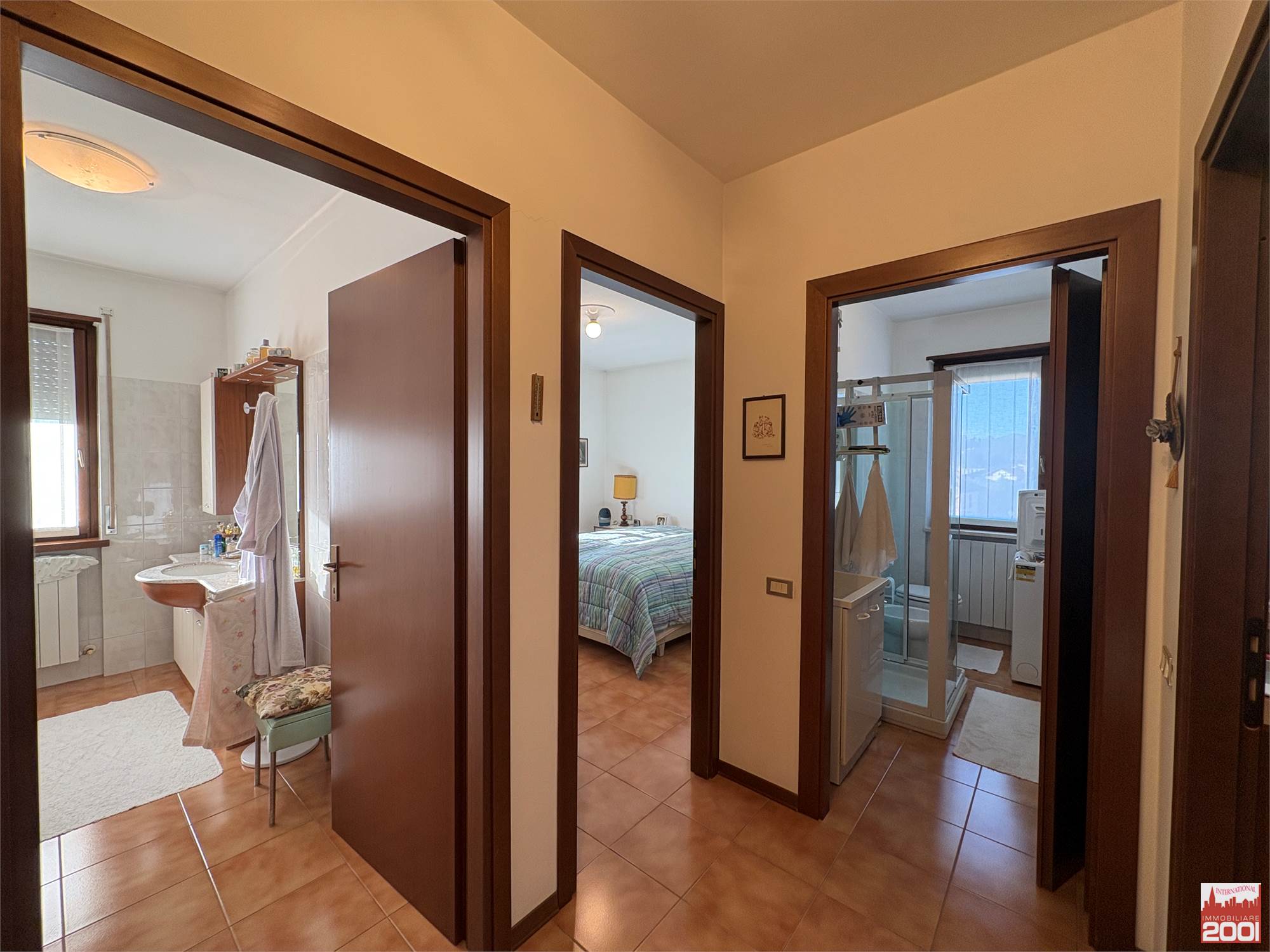 Il disimpegno conduce poi alla zona notte, composta da tre camere da letto, un bagno con doccia e un secondo bagno con vasca.