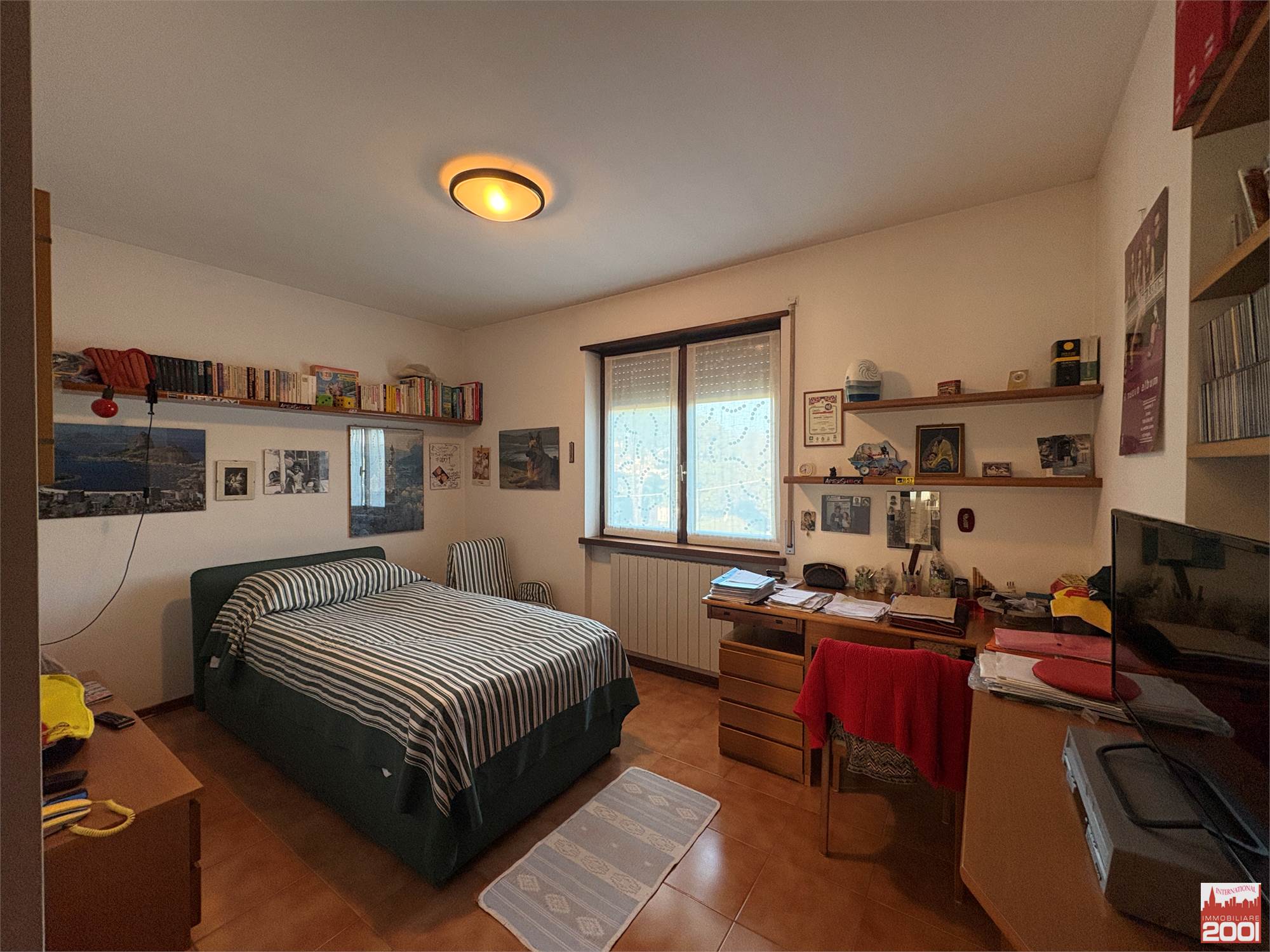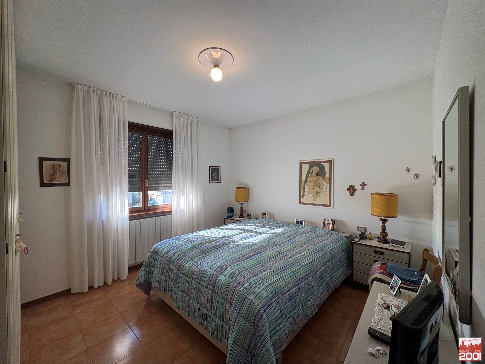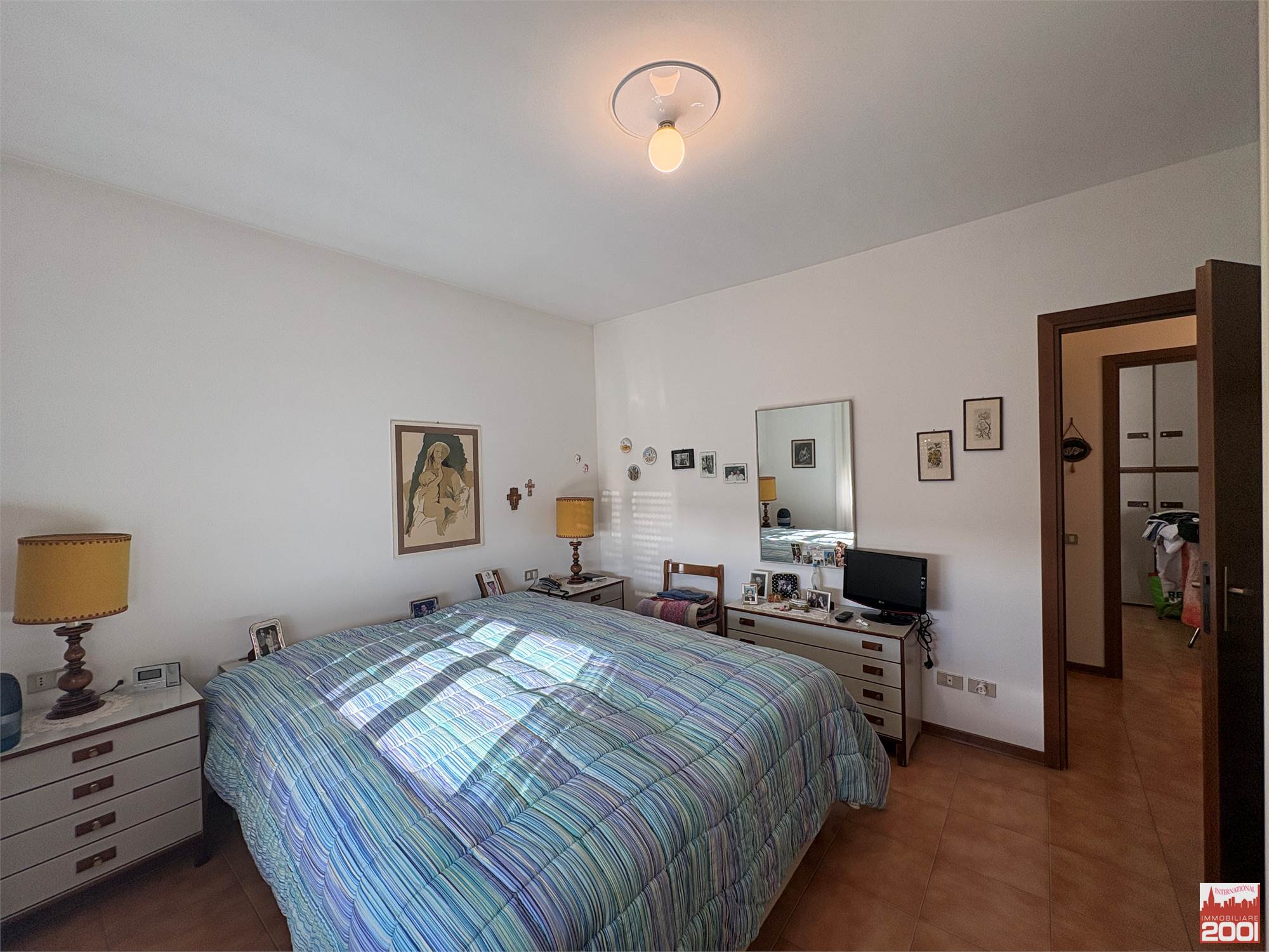 Il disimpegno conduce poi alla zona notte, composta da tre camere da letto, un bagno con doccia e un secondo bagno con vasca.
