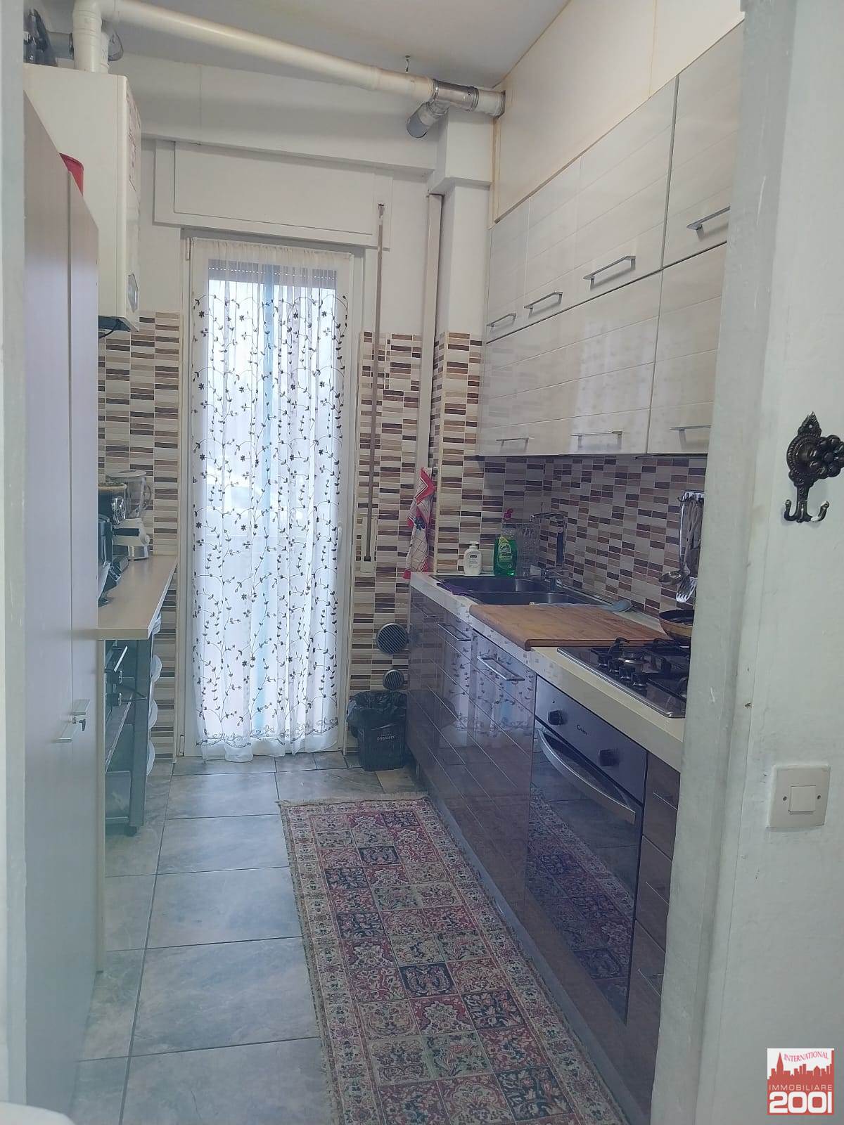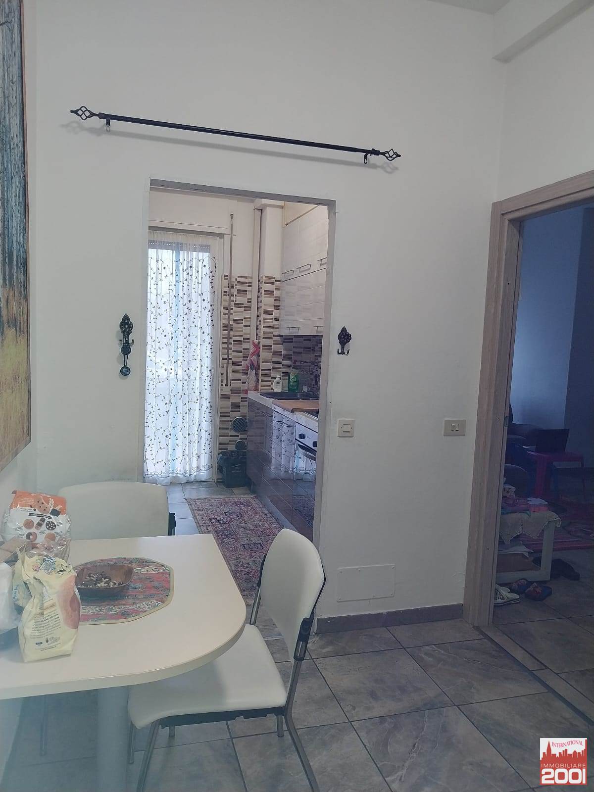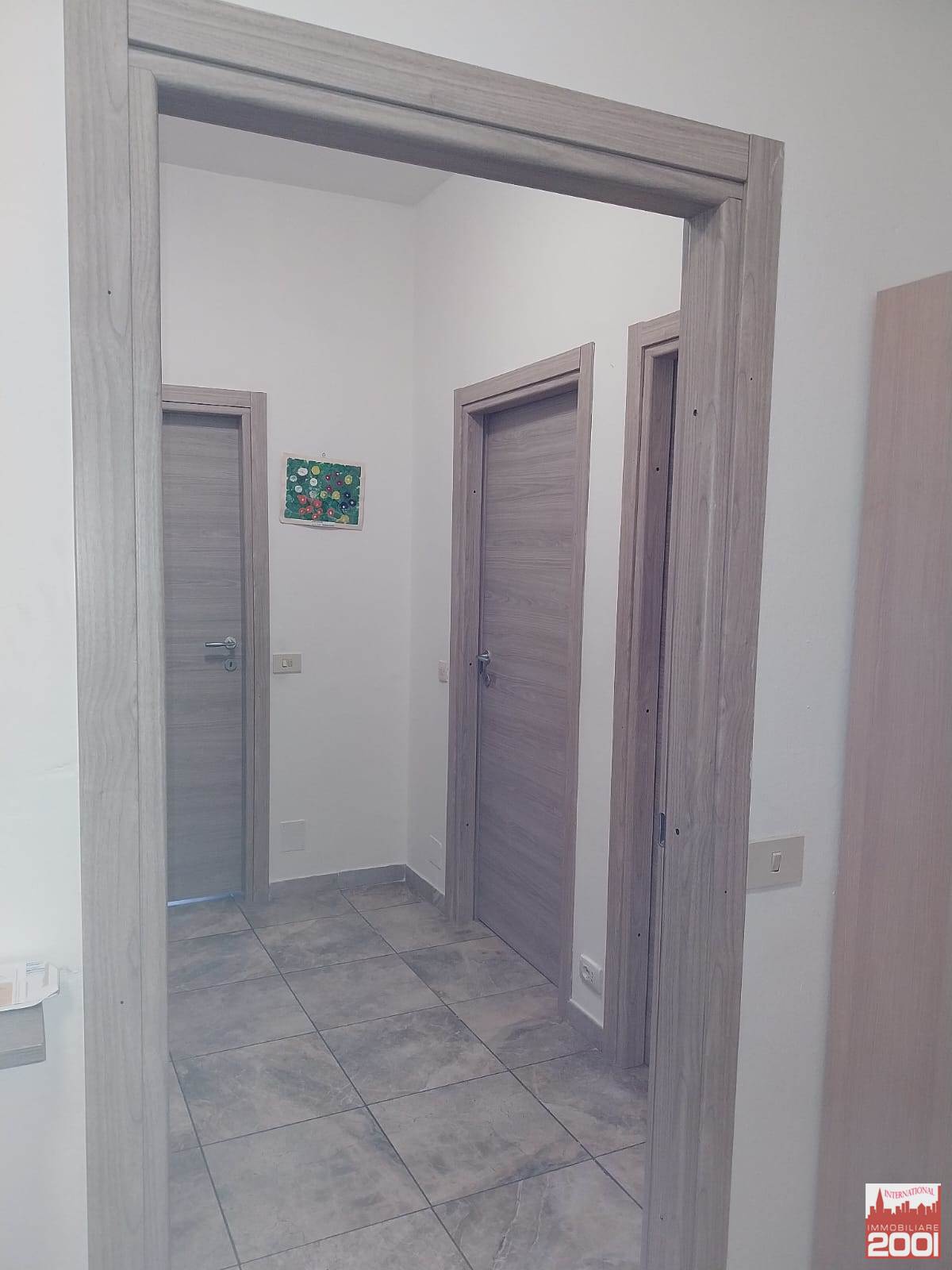 Ampio ingresso con porta blindata, cucina abitabile con balcone, soggiorno, disimpegno zona notte, due camere da letto matrimoniali e bagno con doccia.