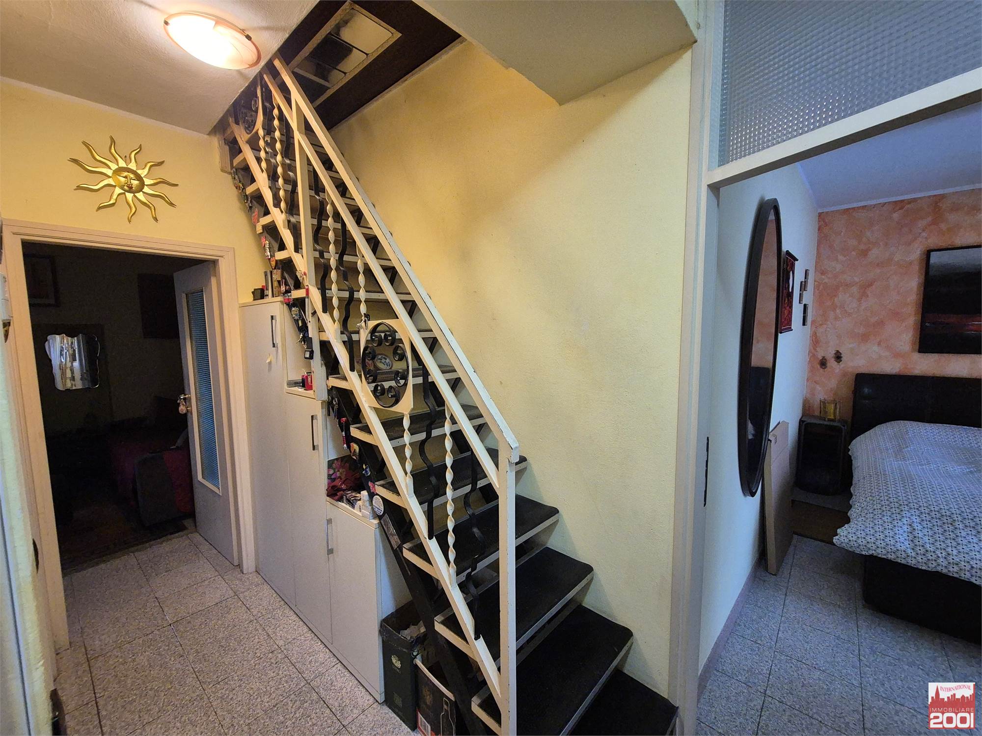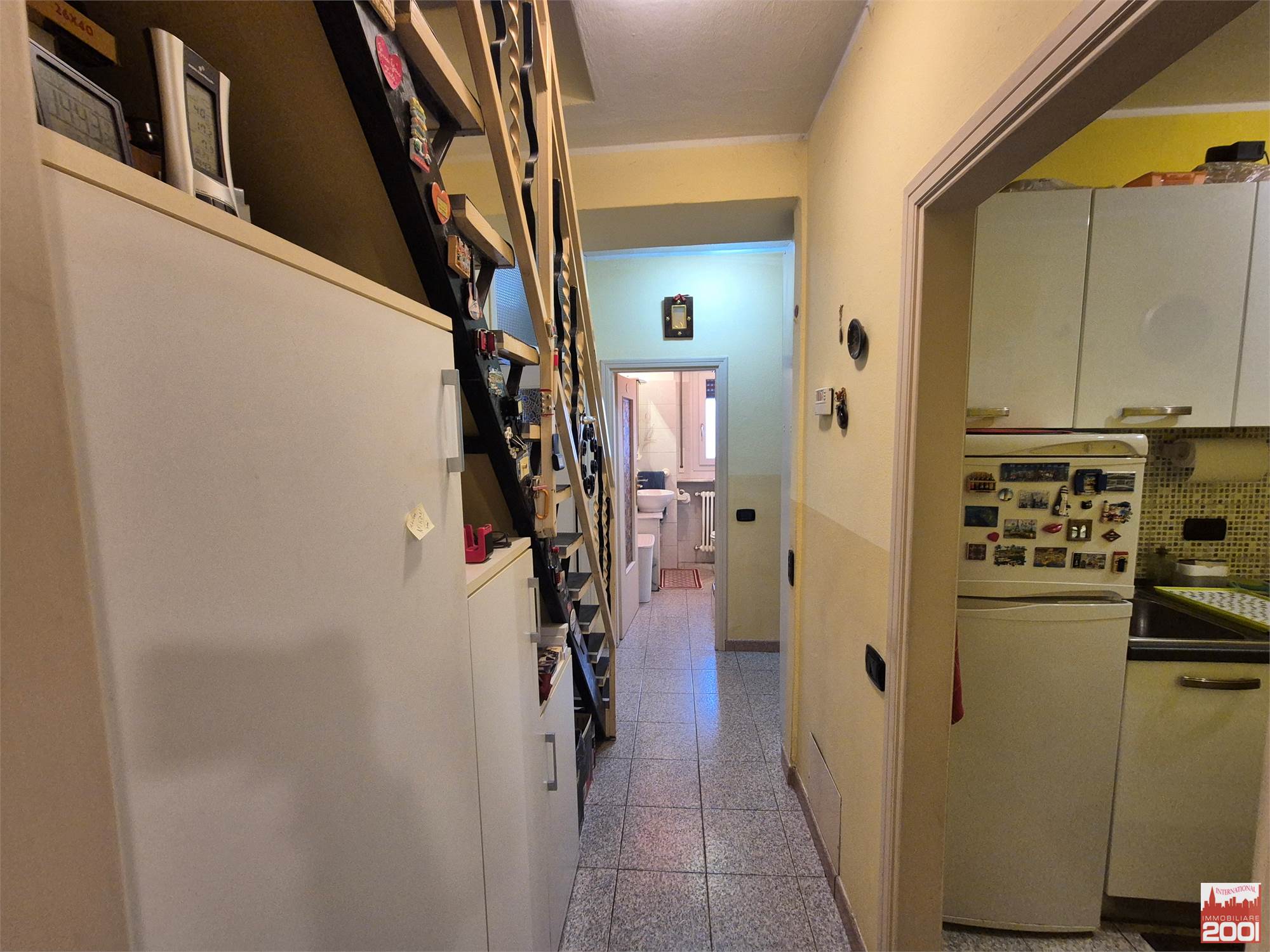 L’ingresso accompagna nella zona giorno, composta da un accogliente soggiorno con cucinotto, ambiente luminoso e funzionale. La zona notte offre una camera da letto matrimoniale con balcone, mentre il bagno finestrato con doccia completa il piano.