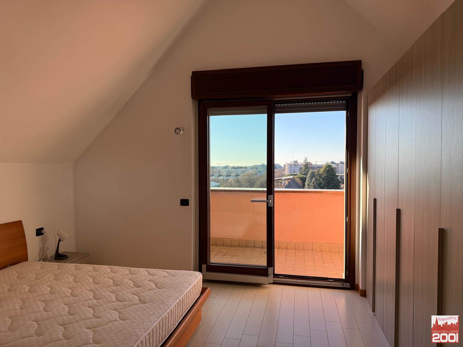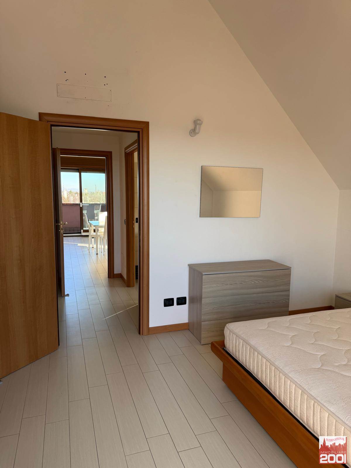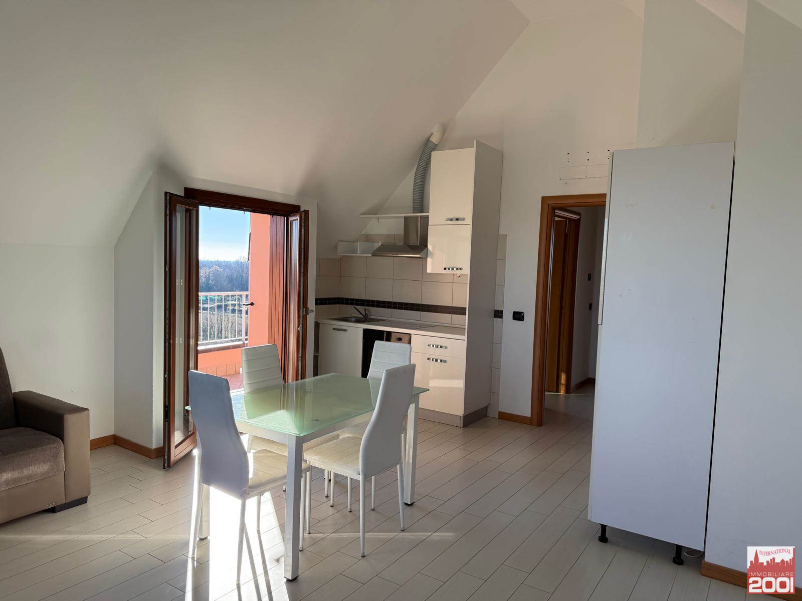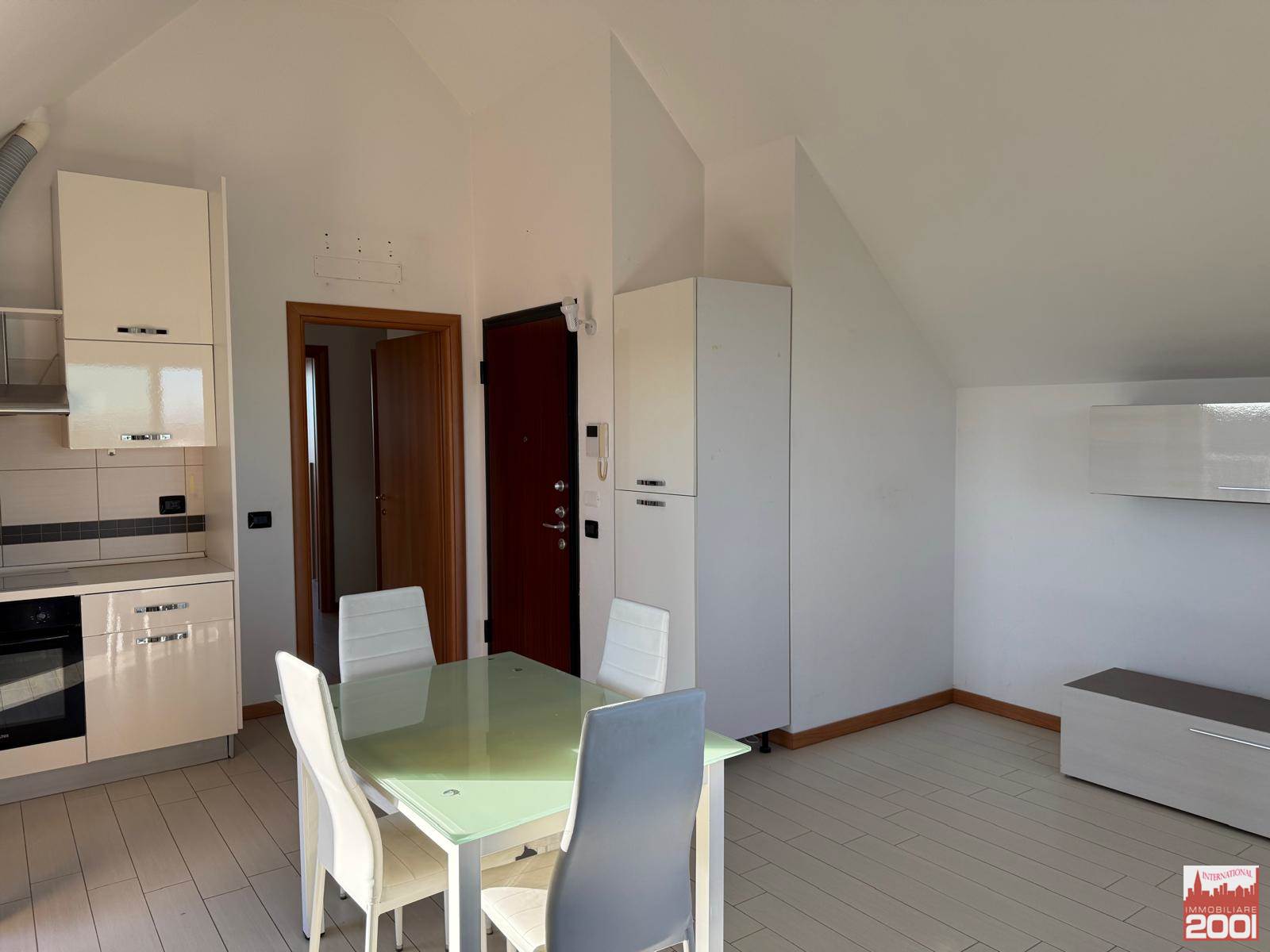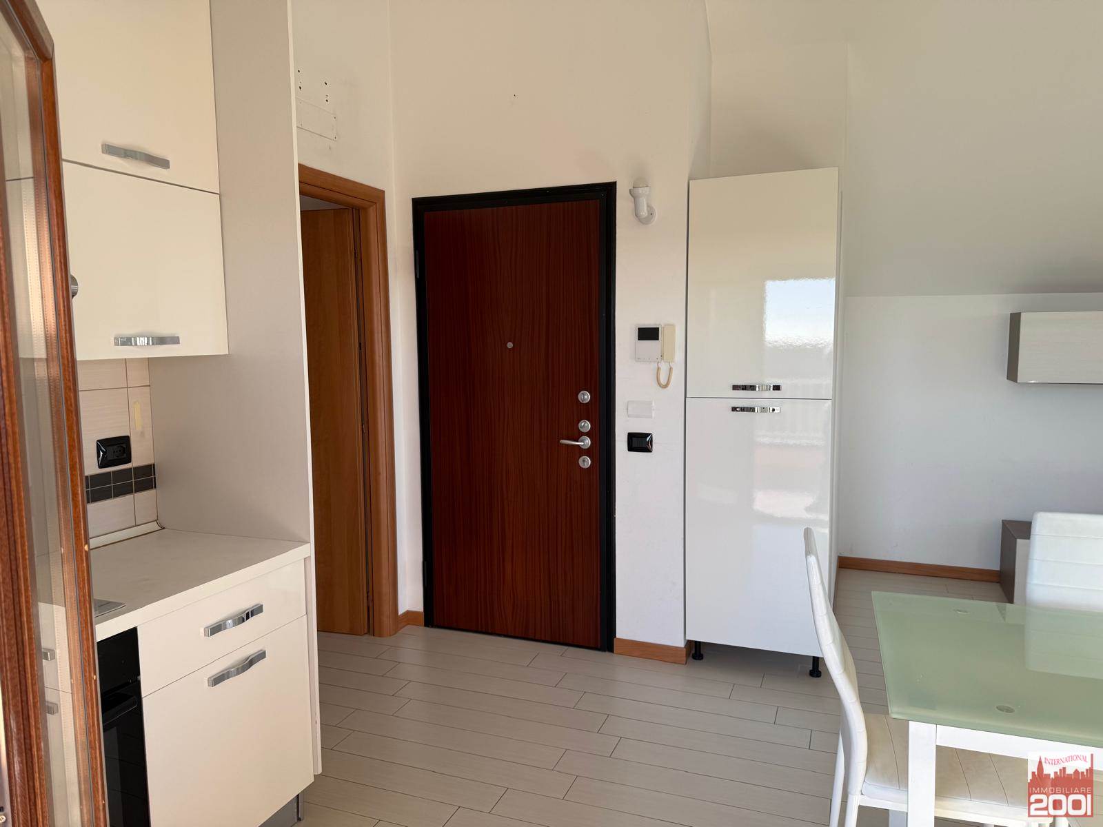 L'ingresso si apre su un soggiorno con cucina a vista, dotato di due balconi che permettono di godere della vista e della luce naturale. Il bagno è moderno e funzionale, mentre la camera matrimoniale offre un ulteriore balcone per rilassarsi all'aperto.